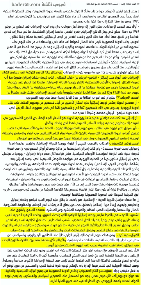نسبة السرقة في النص السارق : معركة القدس التي لا تنتهي .. إعادة إنتاج الخرافة المؤسسة للأوهام الصهيوينة.. - كمال الذيب - جريدة الأيام البحرينية - 11/12/2017