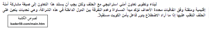 المقالة الأصلية : موقع وزارة الإعلام الكويتية - قطاع الأخبار - كلمة الشيخ أحمد الفهد الصباح في المؤتمر الدولي للناتو ودول الخليج |