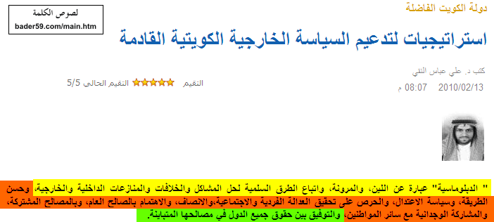 النص السارق : استراتيجيات لتدعيم السياسة الخارجية الكويتية القادمة - د.علي النقي - الوطن الكويتية - 3/12/2010 |