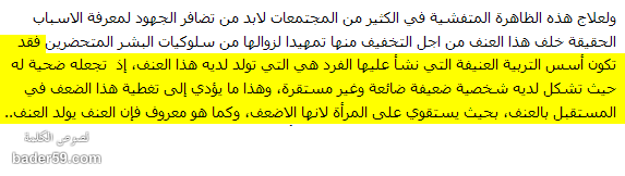 المقالة الأصلية : العنف ضد المرأة .. الأسباب والعلاج - مركز أمان للدراسات - 1/1/2003