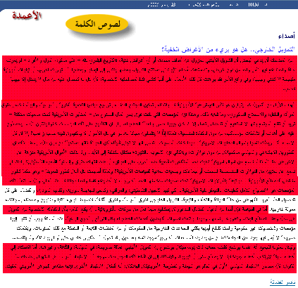 صورة لمقالة الفضالة يوضح اللون الأحمر مقدار السرقة الحرفية من مقالة الأستاذ أحمد الخميسي
