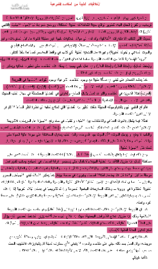 صورة مصغرة لمقالة الدكتور سعد العنزي ، ويوضح اللون الأحمر فيها مقدار السطو على مقالة الدكتور عمر حسن قاصولي |