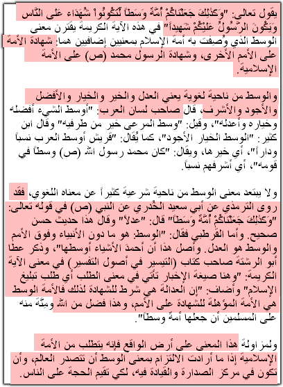المقالة الاصلية : أمة الوسط، حتى لا يختلط الأمر في التفسير - أحمد الخطيب - 24/2/2005 |