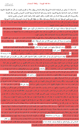 صورة مصغرة لمقالة الدكتور سعد العنزي ، ويوضح اللون الأحمر فيها مقدار السطو على مقالة الأستاذ أحمد الخطيب