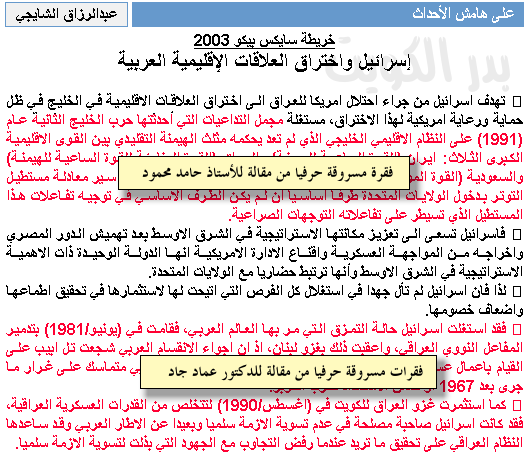 مقالة الدكتور الشايجي جاءت مكونة من خمس فقرات ، ثلاث فقرات منها مسروقة بالكامل من كاتبين اي أنه مارس فعل السرقة الأدبية على أكثر من نصف مقالته