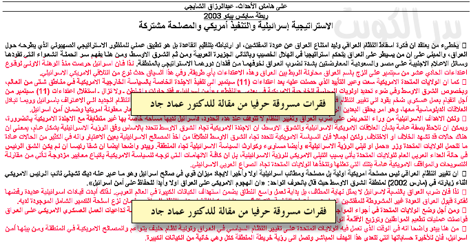 مقالة مطولة للدكتور عبد الرزاق الشايجي ليس بها سوى خمسة اسطر هي من تأليفه واسلوبه