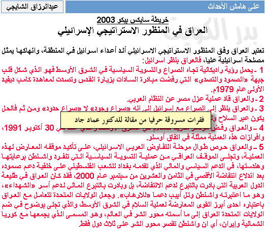 من الصور السابقة يتضح أن الدكتور عبد الرزاق الشايجي ، لم يتعب سوى في كتابة 15 كلمة فقط ، أما باقي المقالة فهي ملطوشة بالكامل ، وهذه صورة عن مقالته كاملة ، وبها نكتشف حجم السرقة الأدبية الذي مارسه الدكتور الشايجي |