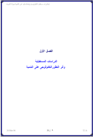 أعدت أمانة المعلومات ودعم اتخاذ القرار في إدارة المكتب الفني التابع للأمانة العامة لمجلس الوزراء الكويتي دراسة بعنوان "استشراف مستقبل التكنولوجيا وانعكاساتها على التنمية في الكويت 2020 - 2030 " ونشر الاصدار الثاني في مارس 2006 ، وهي دراسة قام بها المستشار طارق ابراهيم أحمد كما جاء في غلاف هذه الدراسة ، وقد اشتملت على أربعة فصول ، على النحو التالي :